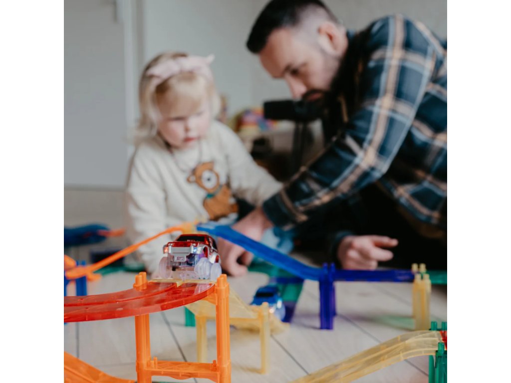 Autíčko je plně kompatibilní s magnetickými dráhami Connetix Tiles a Magna Tiles.
