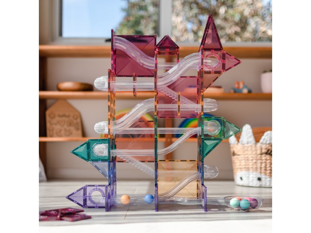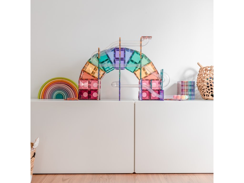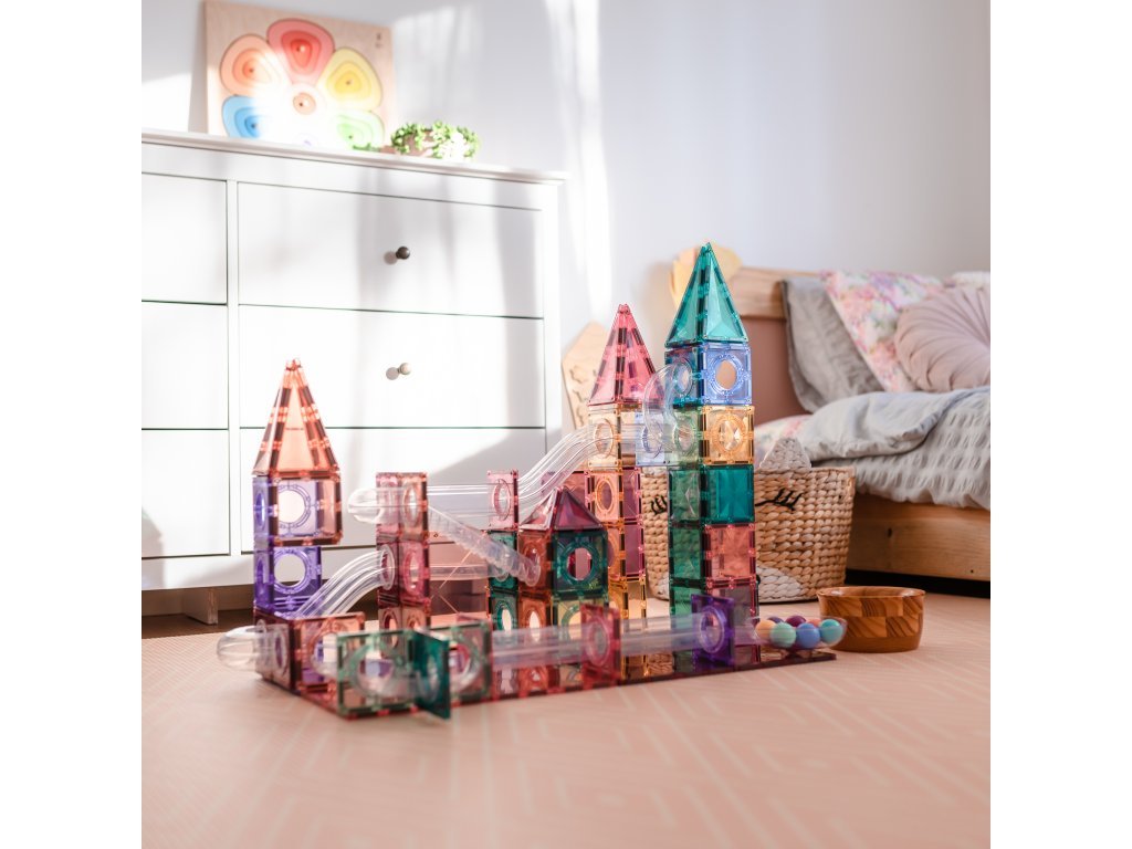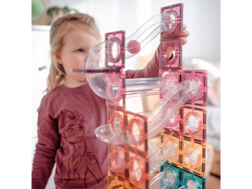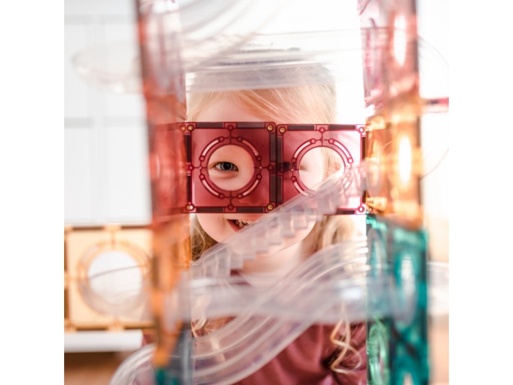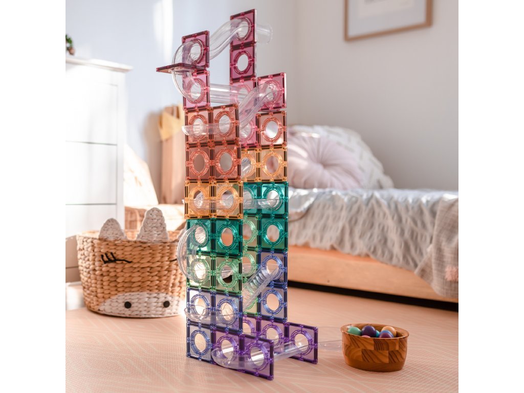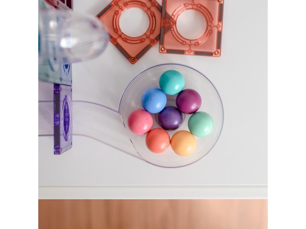 S kuličkovou dráhou Connetix Tiles děti vytvoří fascinující stavby, po kterých se kuličky řítí dolů průhlednými tunely. Každé spuštění je jiný zážitek a nové uspořádání dílků zaručí nekonečnou zábavu.