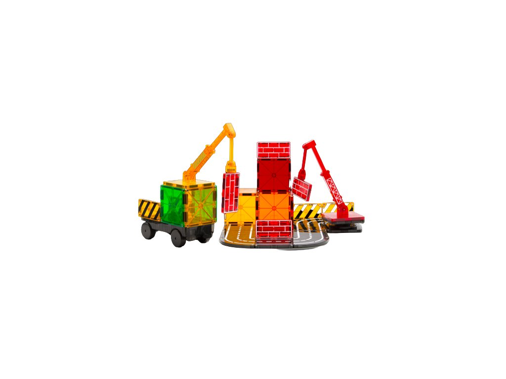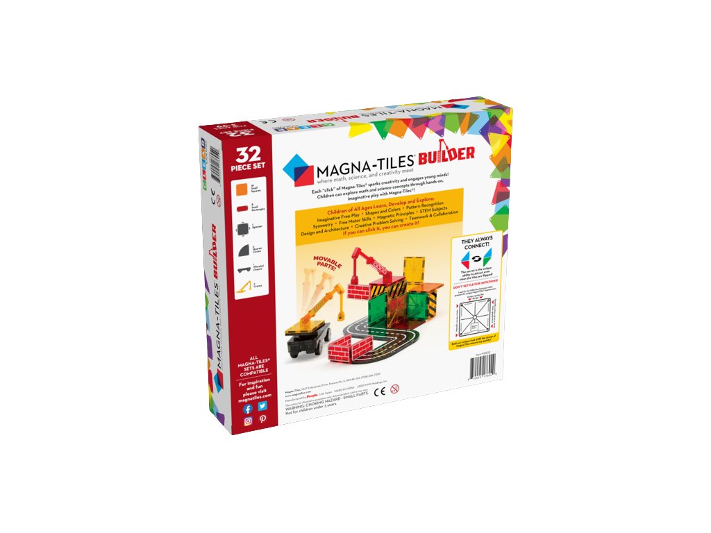 Úžasná 32 dílná stavební souprava Stavebnice Magna-Tiles® ! Neznáme lepší stavebnici, která by dětičky natolik pohltila do hry jako Magna-Tiles®. Magnetická stavebnice pro děti přináší hodiny nápadité a soustředěné zábavy. Děti se mohou hrát samy nebo s kamarády, či rodiči. Neexistuje žádná hranice pro dětskou kreativitu. Vymýšlejte stále nové a nové varianty, a rozmanité stavby. Tato sada obsahuje příslušenství k vybudování silnic, základů stavby a strojů, které nacházíme běžně na staveništi.